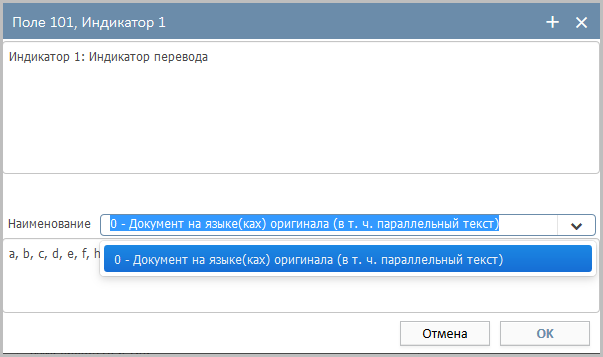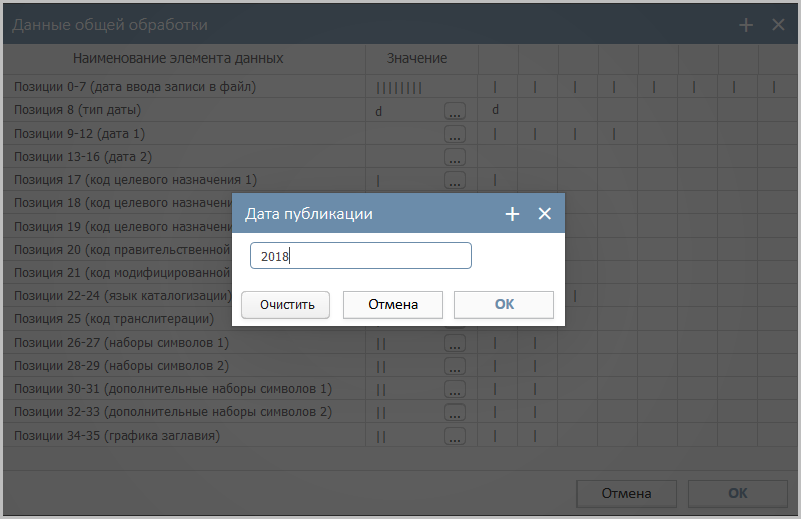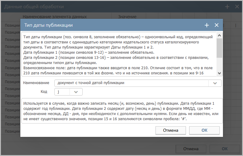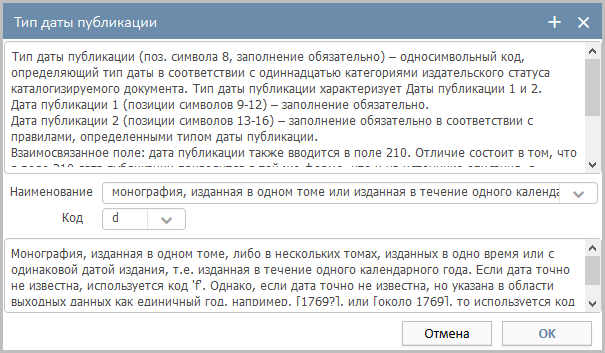 . На экране появится окно" Тип даты публикации". Верхняя часть окна представляет собой указания для заполнения подполя" 100а".