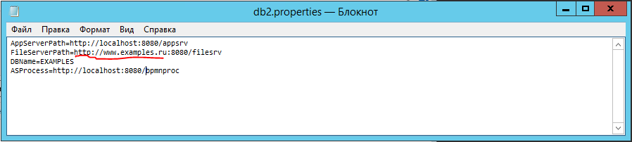 В файле нужно найти строку "FileServerPath=http://localhost:8080/filesrv" и заменить "localhost" на внешнее имя сервера, например, так: "FileServerPath=http://www.examples.ru:8080/filesrv".