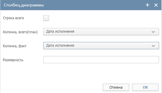 - Размерность - значение, которое добавляется к числам на диаграмме (₽, чел*ч, дней и т. п.).