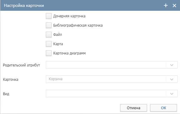 Одной из таких ситуаций можно назвать случай, когда один и тот же фрагмент интерфейса должен быть использован на различных окнах. В таком случае можно подготовить карточку с видом, содержащим данный фрагмент, затем установить элемент интерфейса, который в качестве атрибута принимает Карточку (Панель, Набор страниц, Вертикальный сплиттер, Горизонтальный сплиттер, Прокрутка). И далее настроить свойство элемента "Атрибут": установить флаг "Дочерняя карточка", выбрать необходимую карточку и вид.