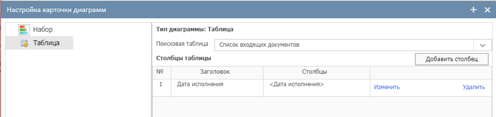 Чтобы создать отчёт, необходимо выбрать поисковую таблицу и затем добавить колонки в таблицу, для чего необходимо нажать на кнопку "Добавить столбец" и ввести следующие данные: