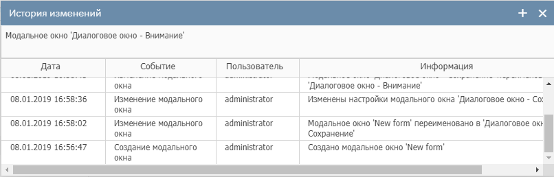 - "Пользователь" - логин пользователя, который внёс изменения в модальное окно;